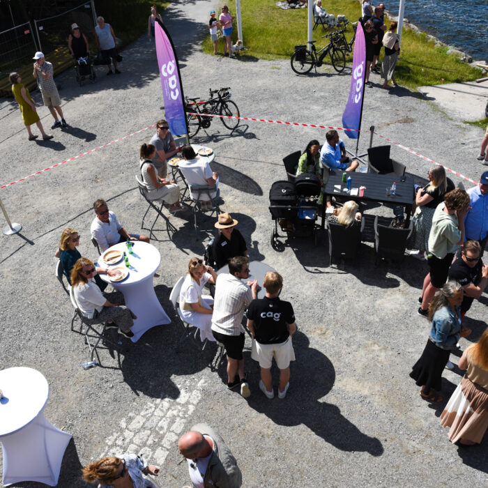 Hejarklacken samlades på CAG Novus kontor i Nacka strand där vi medarbetare, kunder, familj och vänner hejade fram båten.